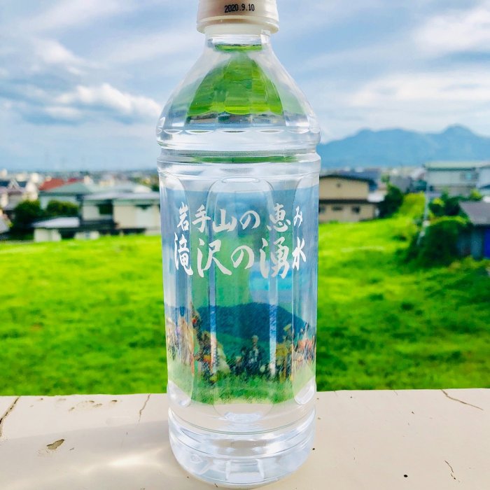 マンホールを置いているコーナーでは「滝沢の湧水」というお水をもらいました。チャグチャグ馬コがラベルになっています。