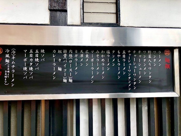 お店の外に掲示されているメニュー表に「焼きそば」を見つけたので、このお店に決めました。