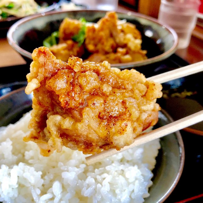 こちら方面へお出かけの方、みんぱいで油淋鶏定食をぜひ!