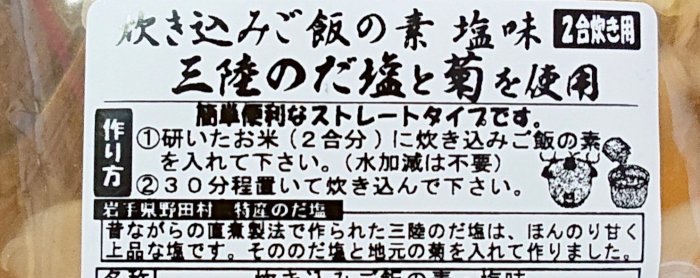 「おらほの塩を使った炊き込みご飯の素」はイオン盛岡前潟店「もりお館」等でお求めいただけます。
